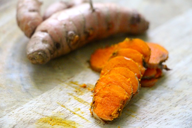 Using a grater, grate a little ginger root and a little turmeric root over the pot to enhance the flavors…