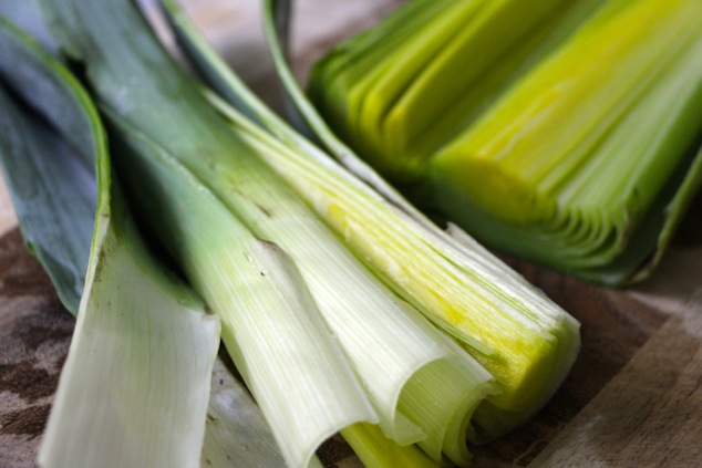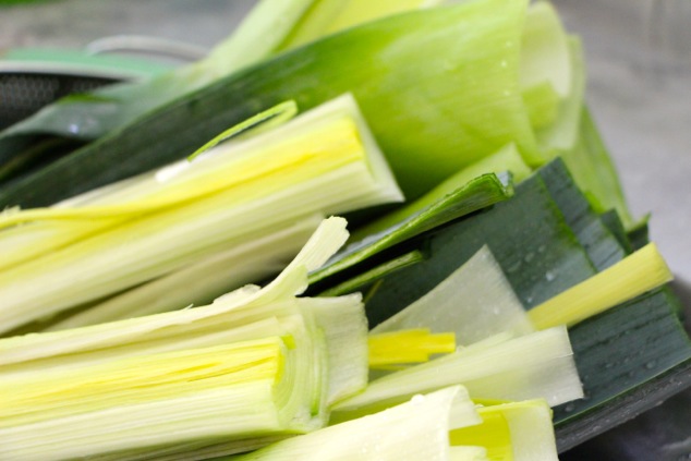 The main work with leeks is making sure they are super clean.