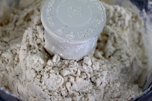 Add the flour and pulse carefully until the mixture is starting to form into dough.