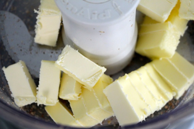 Place butter and powdered sugar in the food processor and pulse into small looking pearls.